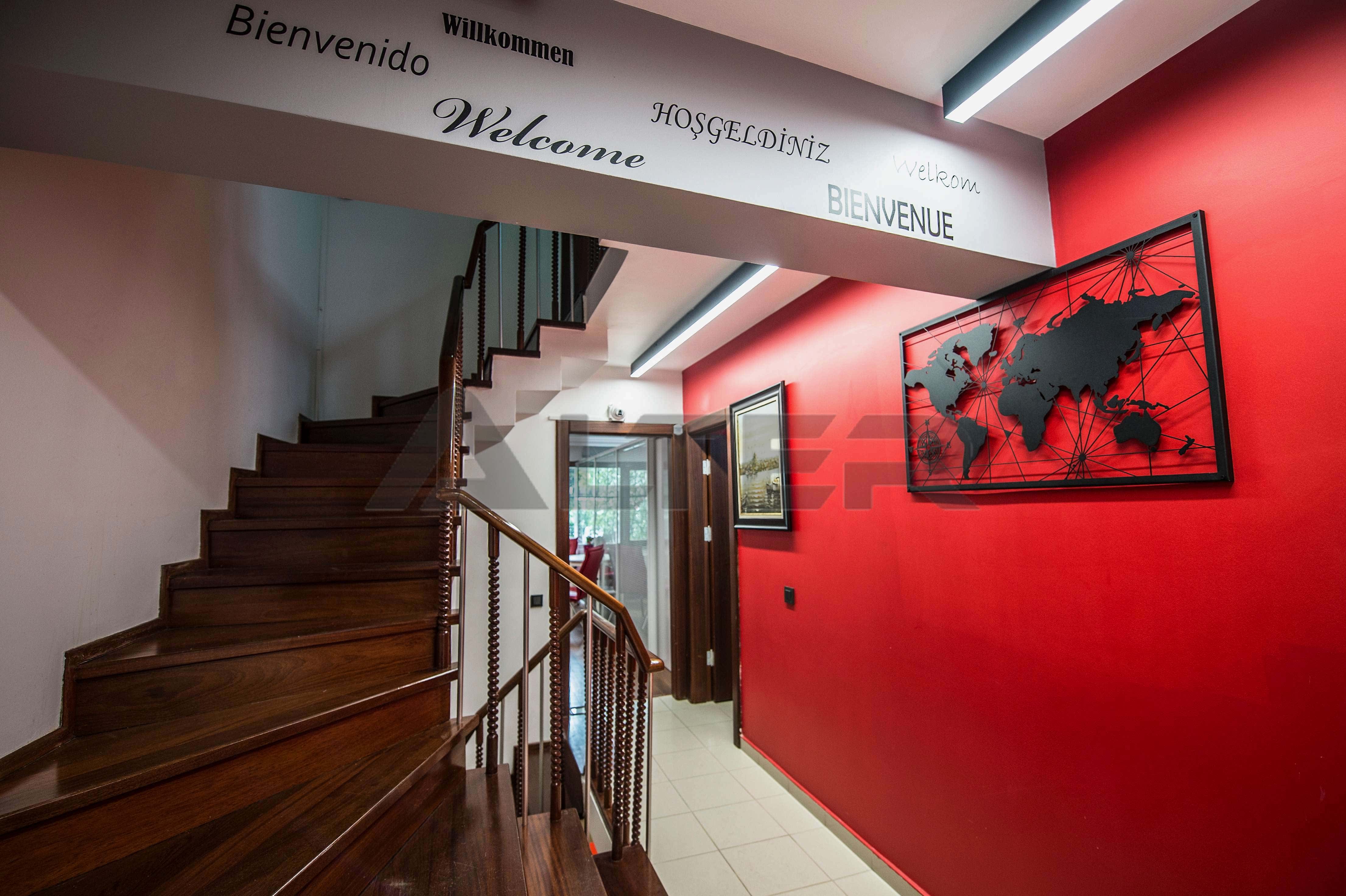 6+2 olan villanın akustik çözümleri için zeminde antibakteriyel halılar tercih ettik.